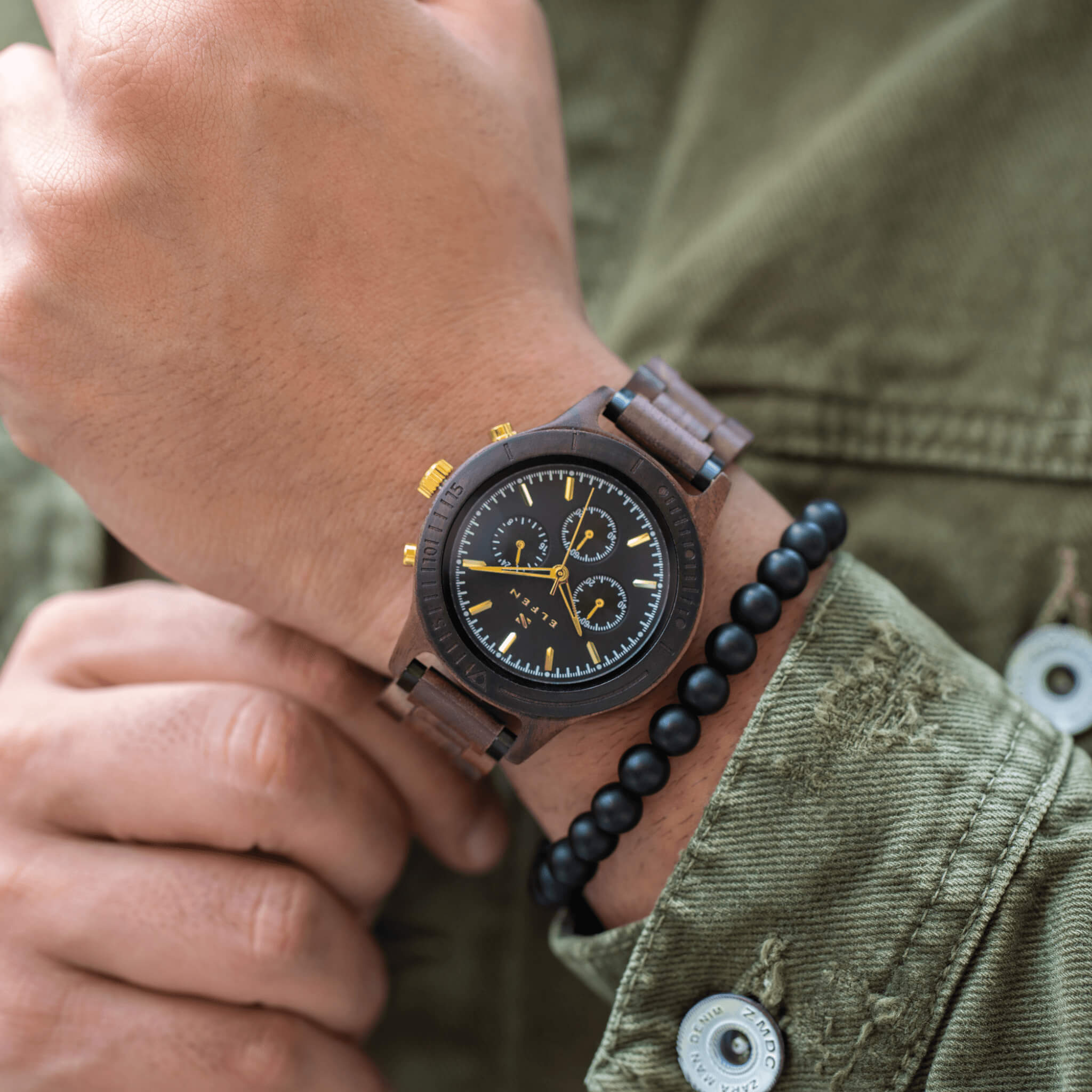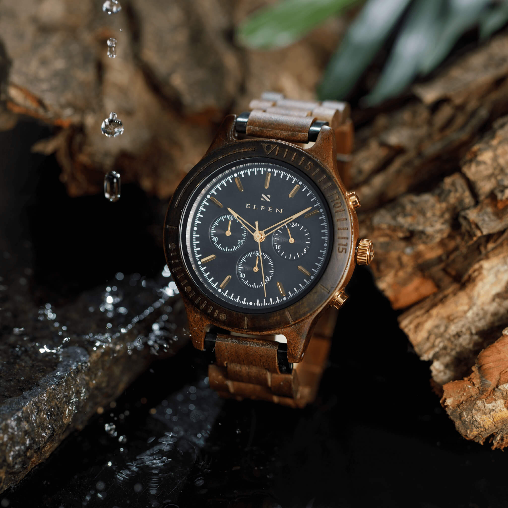Unlike the popular opinion, wooden watches feel really light weight on your wrist. All of the watches from Elfen weigh less than 80 grams, and you can easily walk around without feeling anything on your wrist.