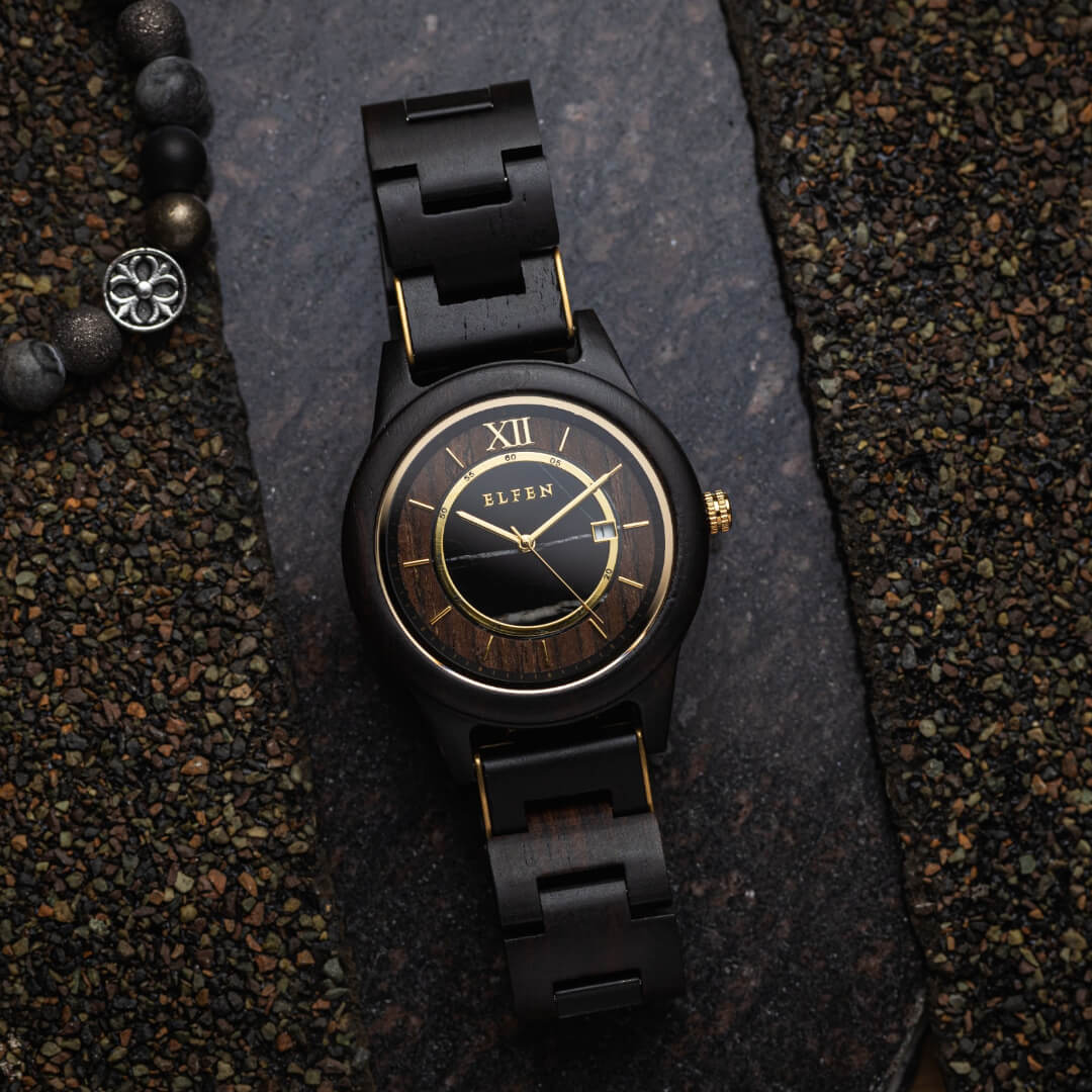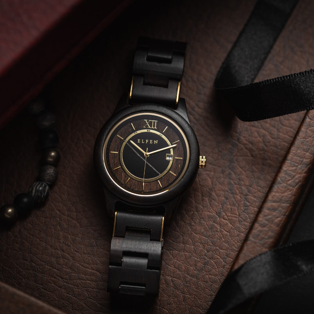 Unlike the popular opinion, wooden watches feel really light weight on your wrist. All of the watches from Elfen weigh less than 80 grams, and you can easily walk around without feeling anything on your wrist.