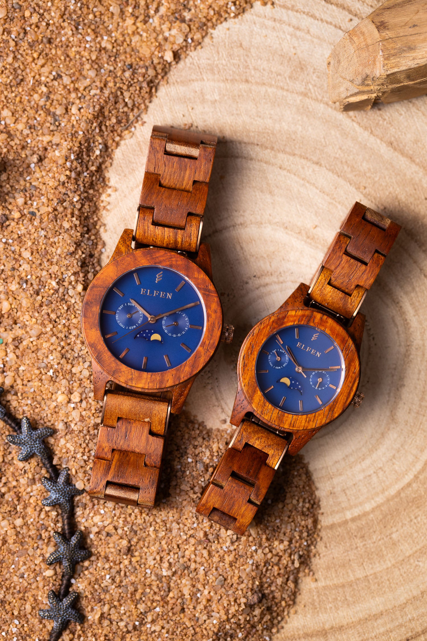 Unlike the popular opinion, wooden watches feel really light weight on your wrist. All of the watches from Elfen weigh less than 80 grams, and you can easily walk around without feeling anything on your wrist.