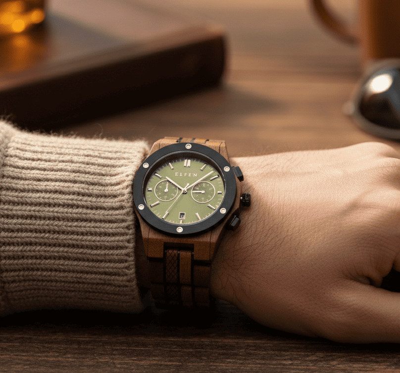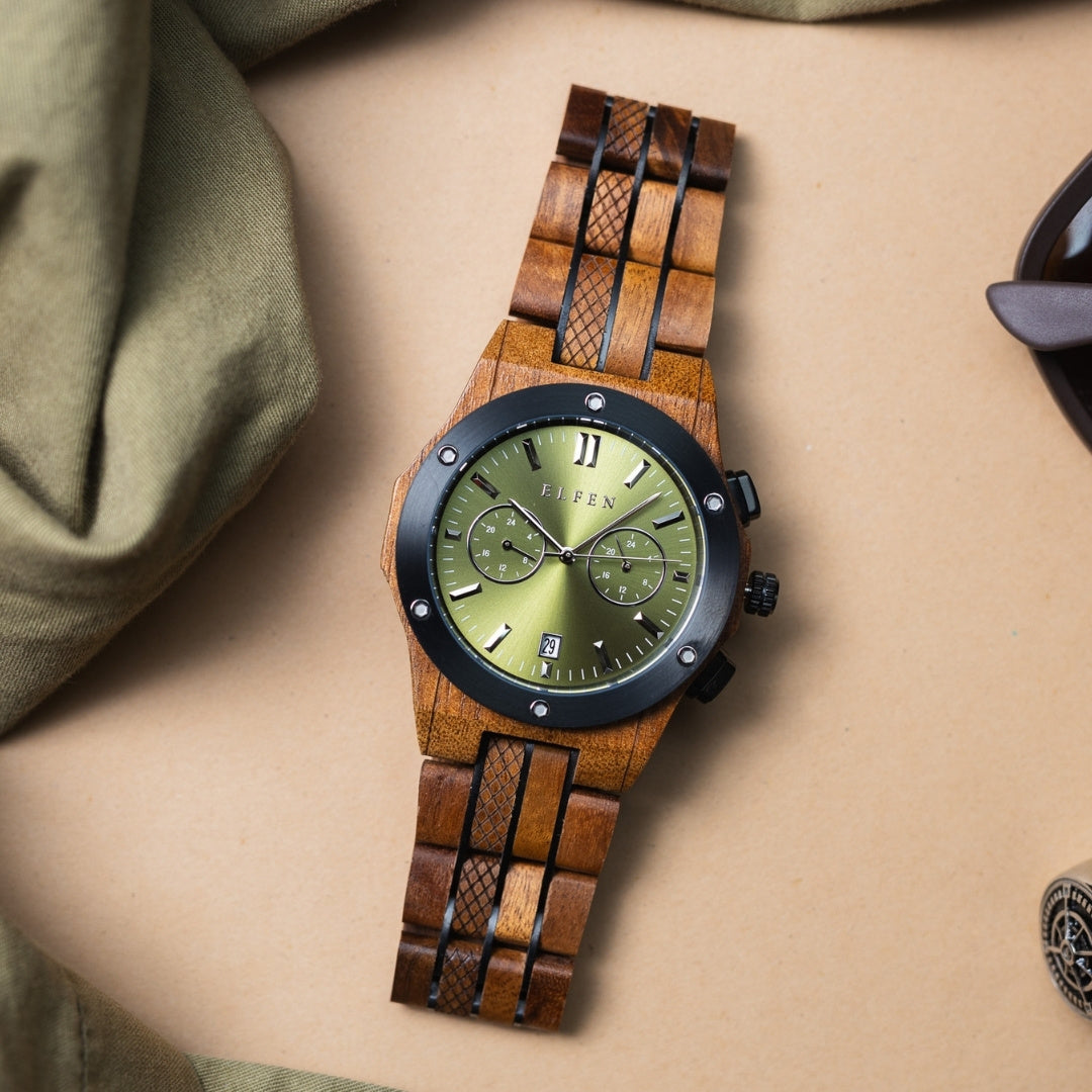 Unlike the popular opinion, wooden watches feel really light weight on your wrist. All of the watches from Elfen weigh less than 80 grams, and you can easily walk around without feeling anything on your wrist.