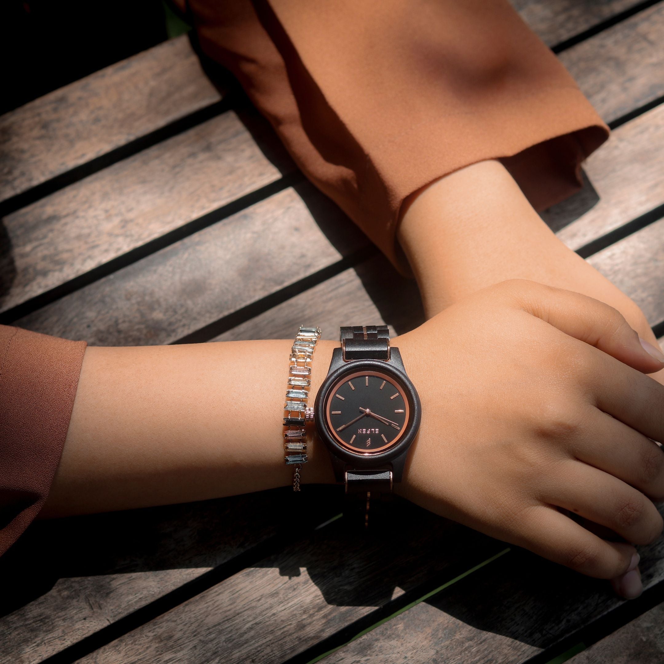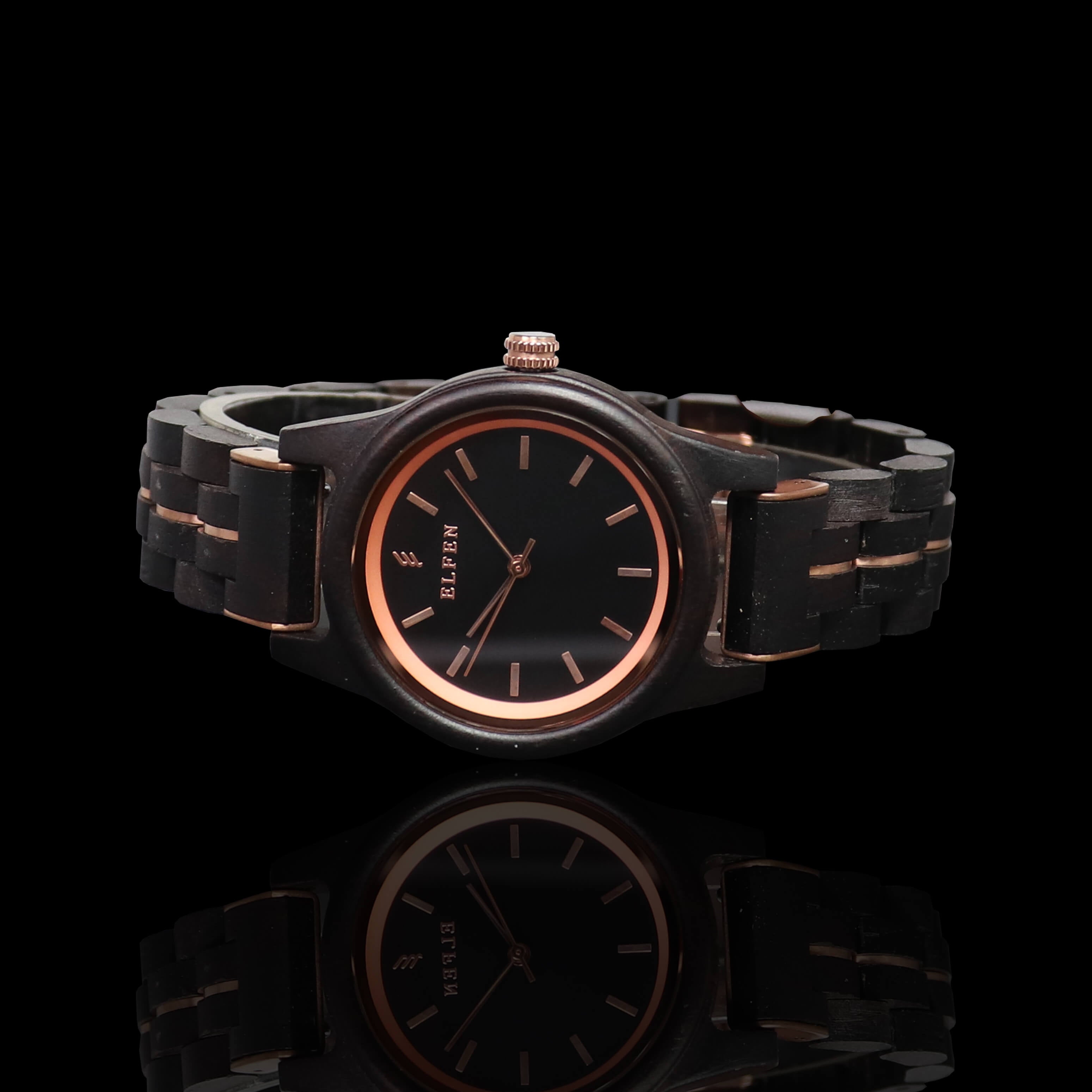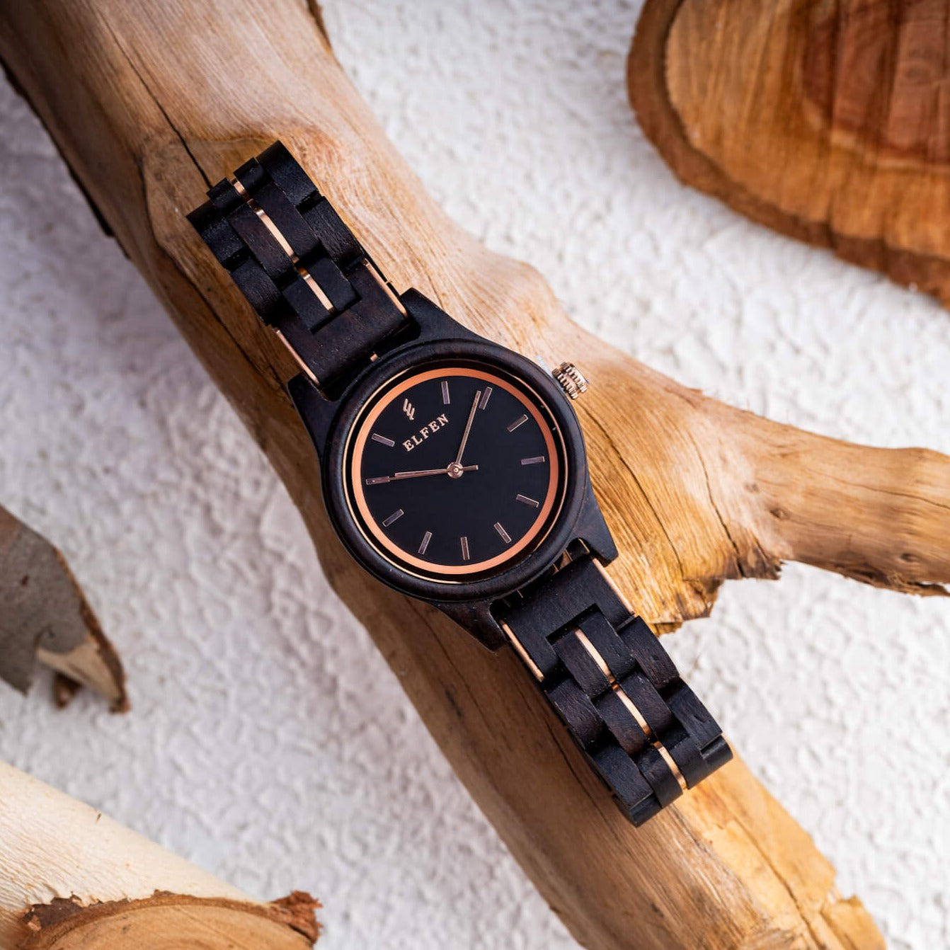 Unlike the popular opinion, wooden watches feel really light weight on your wrist. All of the watches from Elfen weigh less than 80 grams, and you can easily walk around without feeling anything on your wrist.
