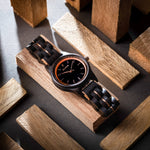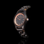 THIS MODEL: Celebrating the spirit of travel, we present to you our signature model "The Cleopatra", which is built by finely sharpening the edges of the 2 rare woods ( Ebony & Zebra Wood ), giving it a caramel texture and at the same time a dark wood charisma. The golden hands and golden band rings of this watch gives it a rich raisin color.