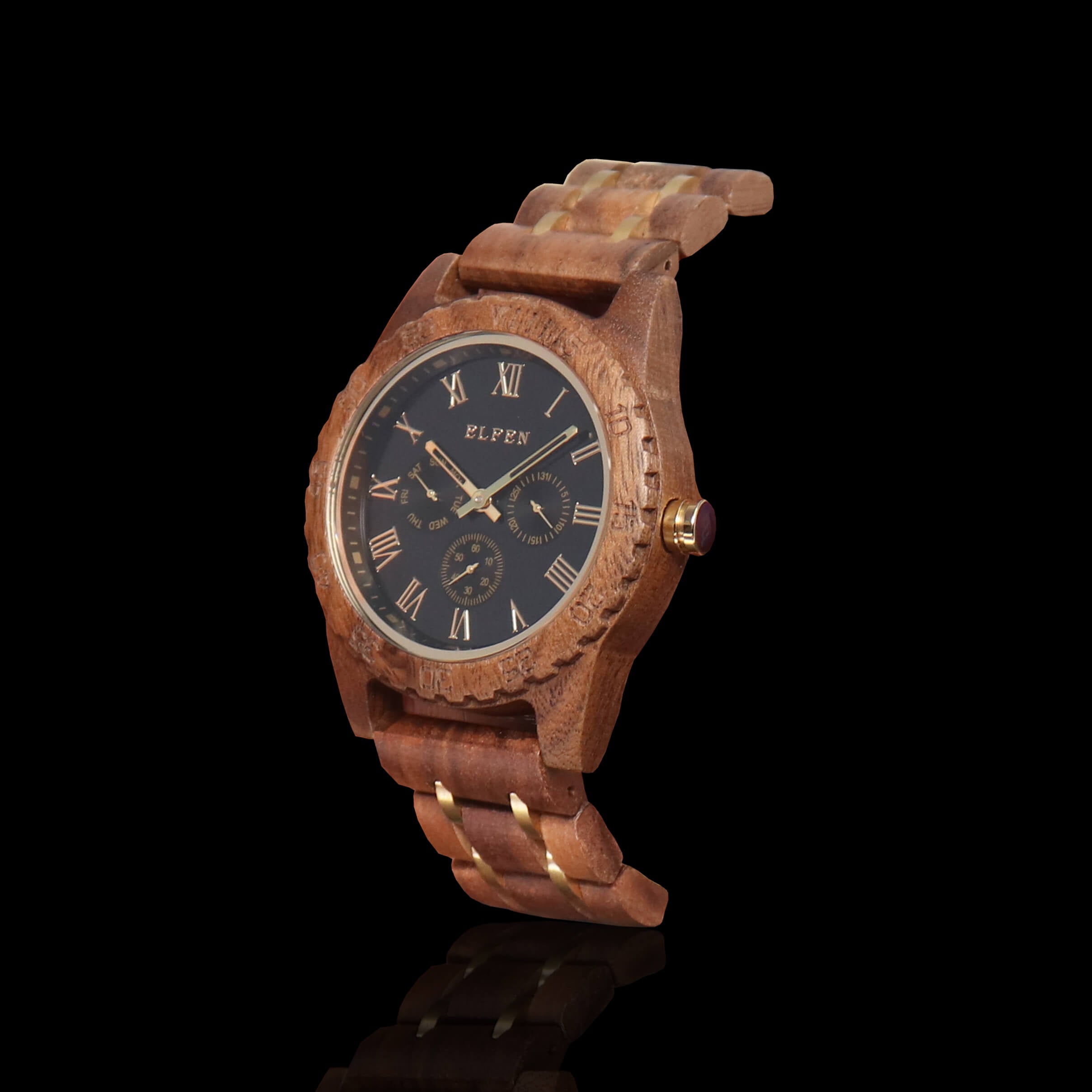 Unlike the popular opinion, wooden watches feel really light weight on your wrist. All of the watches from Elfen weigh less than 80 grams, and you can easily walk around without feeling anything on your wrist.