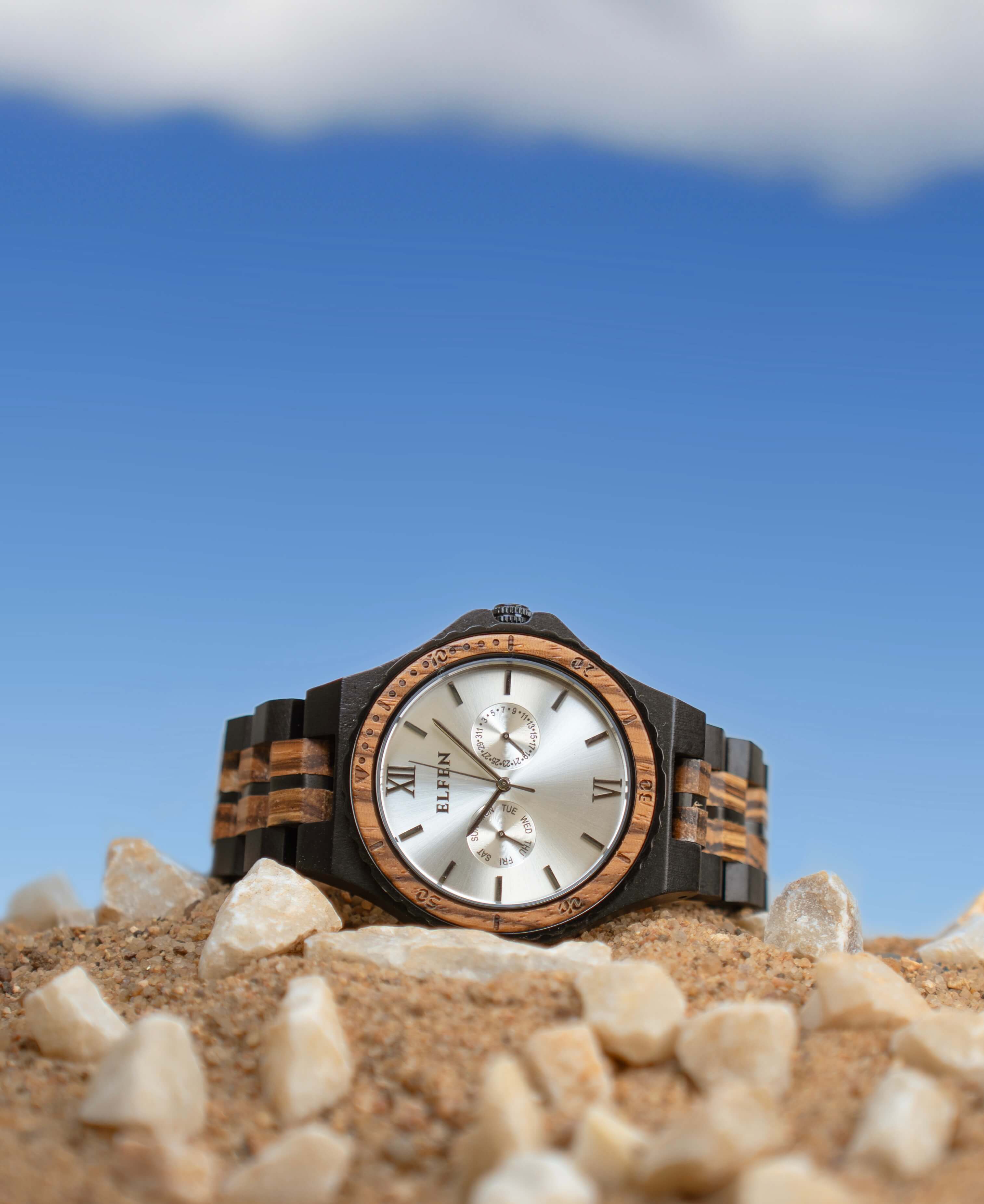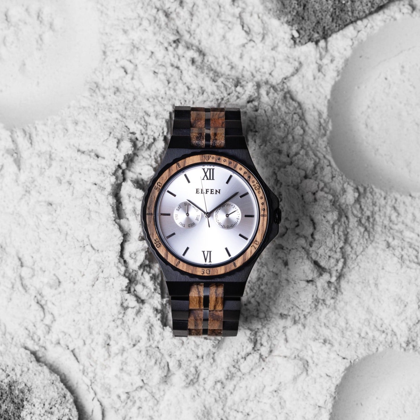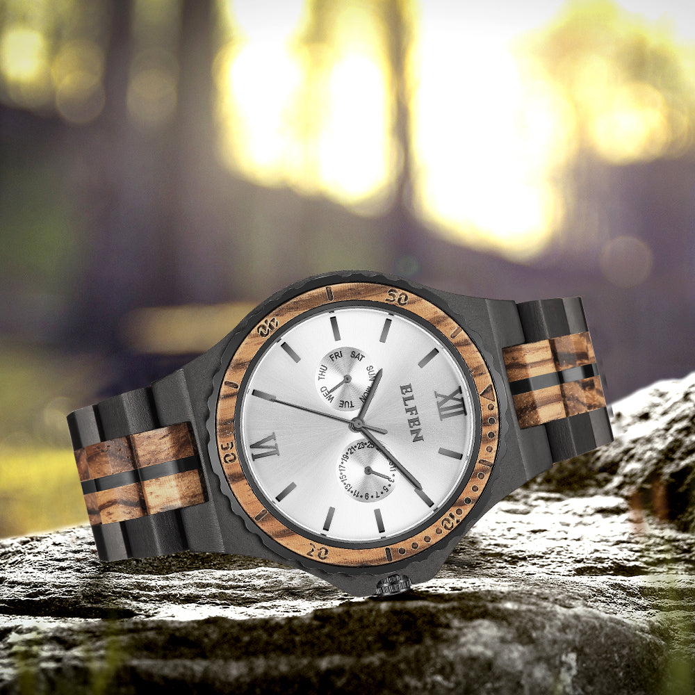 Unlike the popular opinion, wooden watches feel really light weight on your wrist. All of the watches from Elfen weigh less than 80 grams, and you can easily walk around without feeling anything on your wrist.