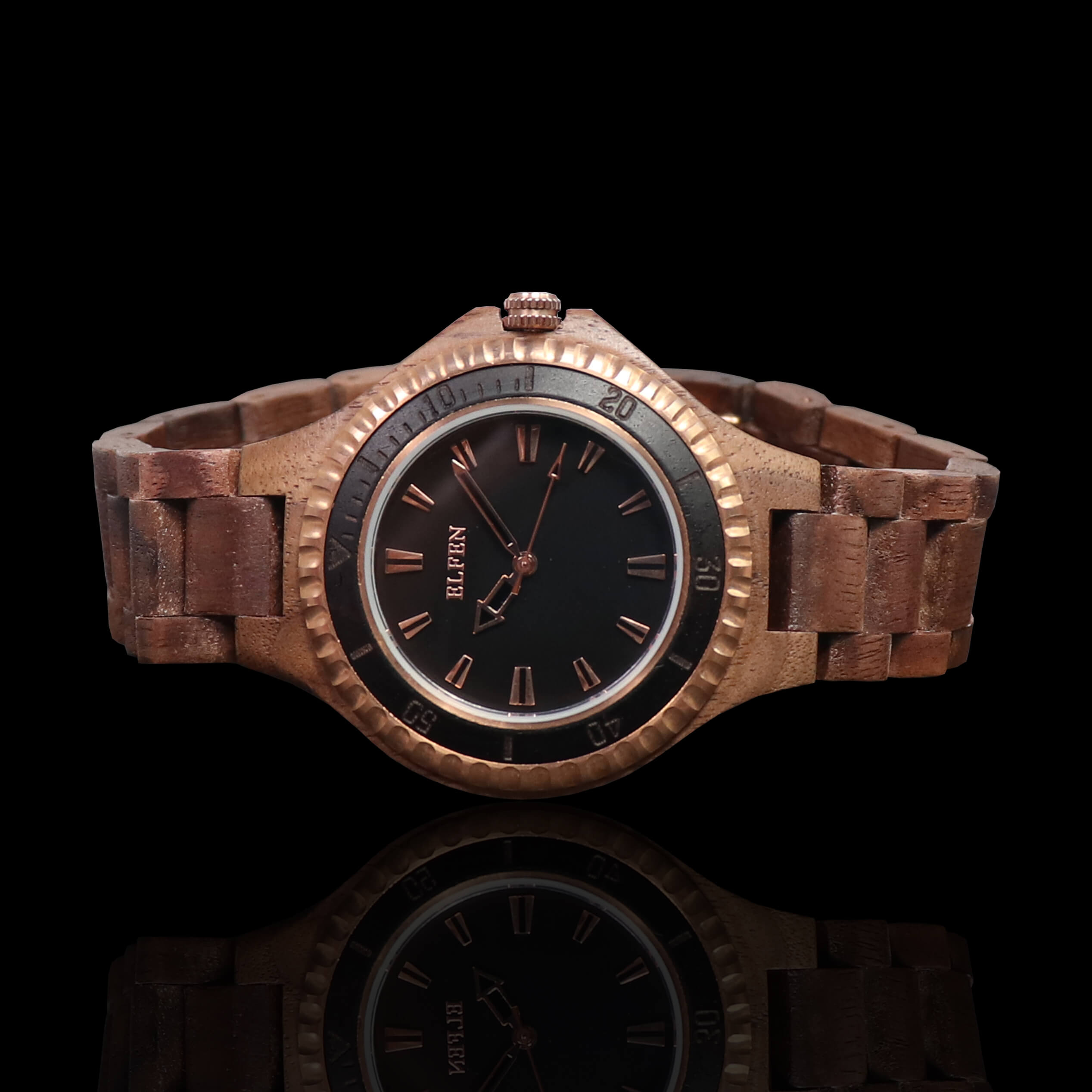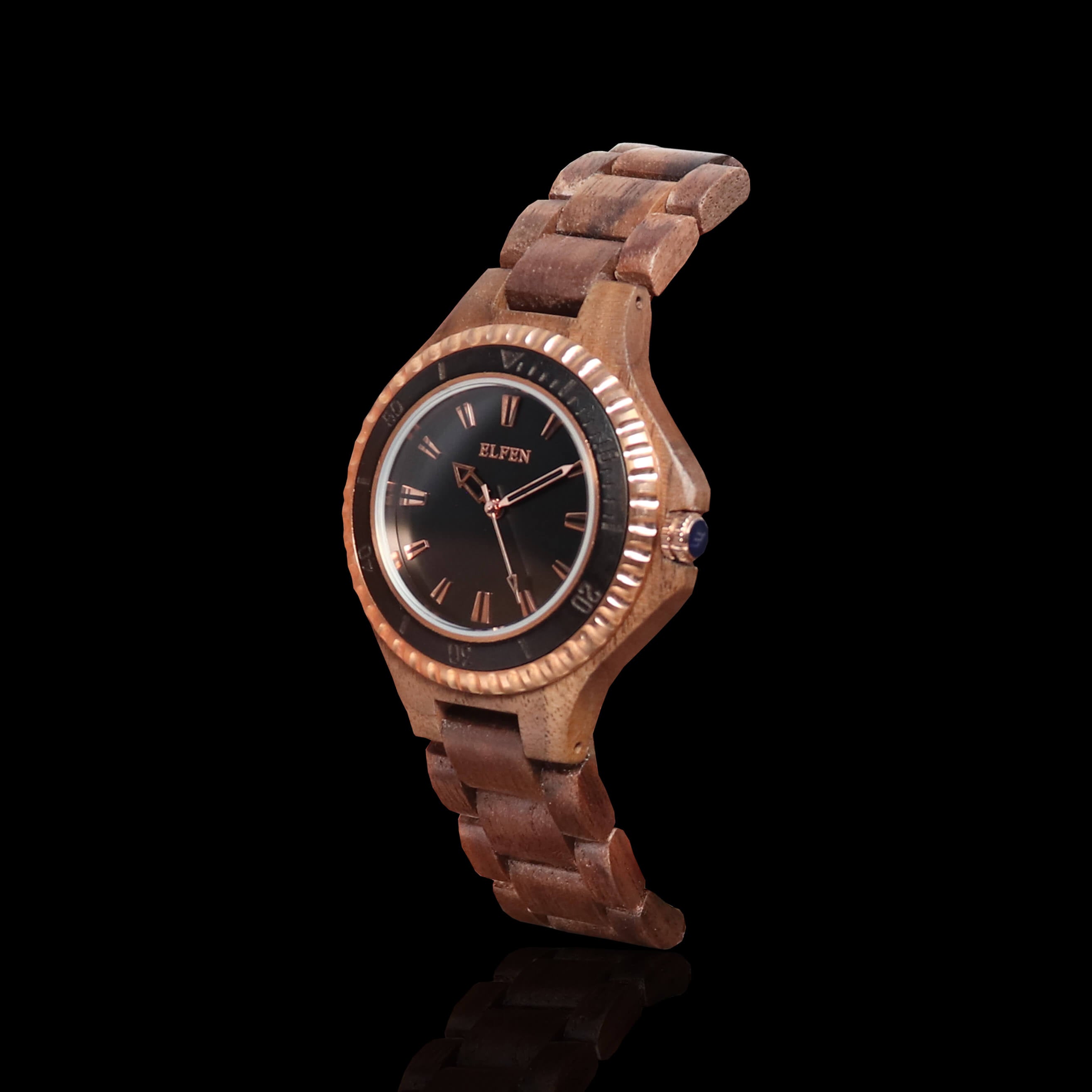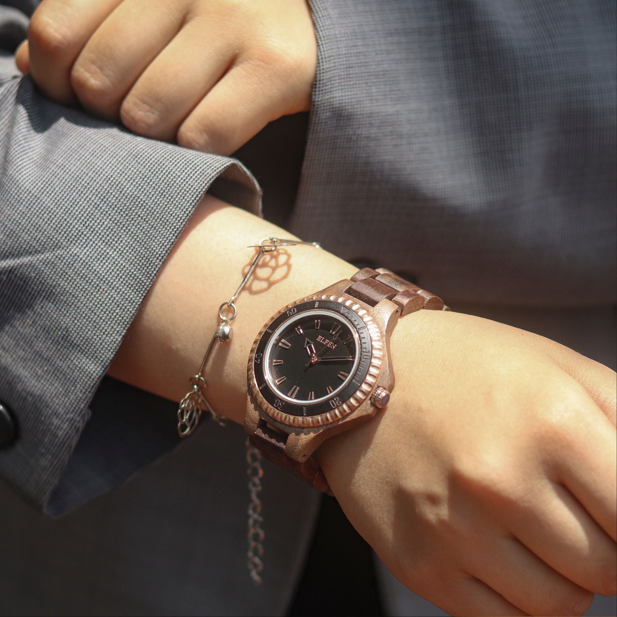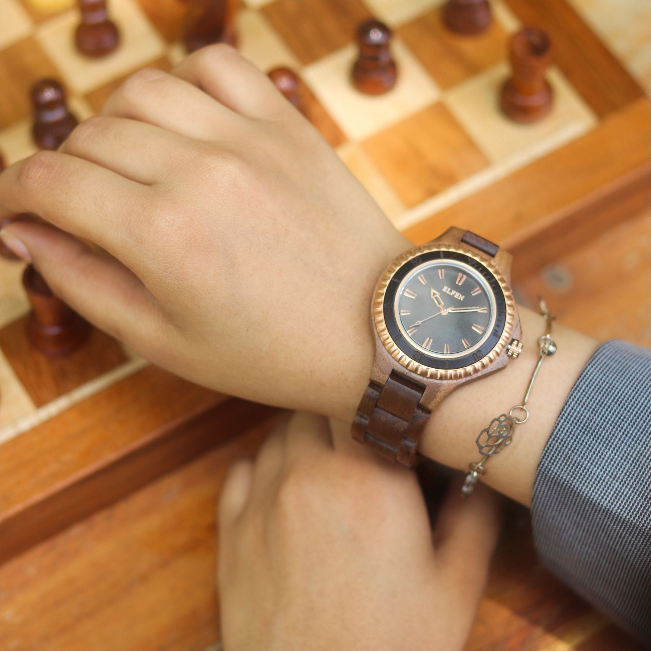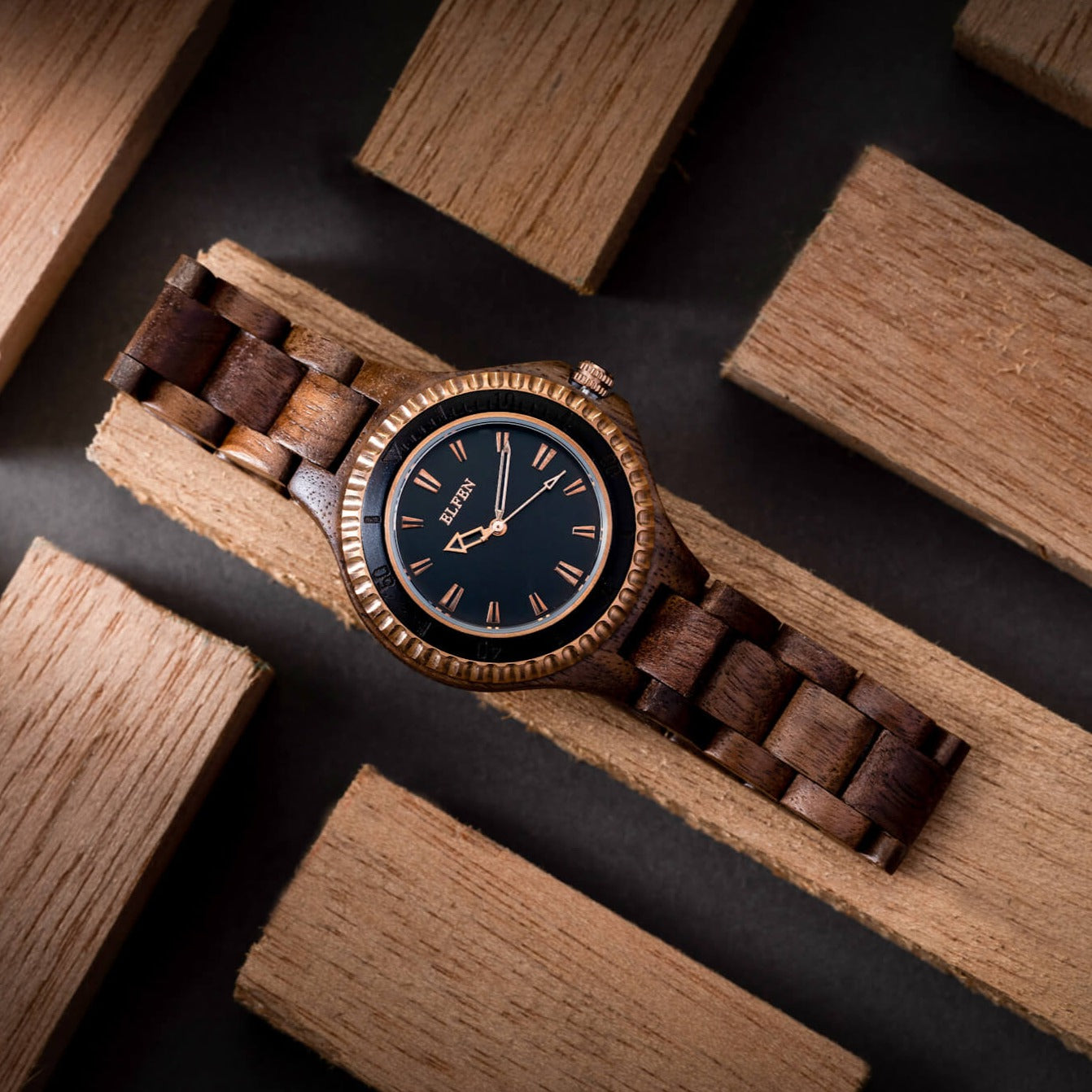 Unlike the popular opinion, wooden watches feel really light weight on your wrist. All of the watches from Elfen weigh less than 80 grams, and you can easily walk around without feeling anything on your wrist.
