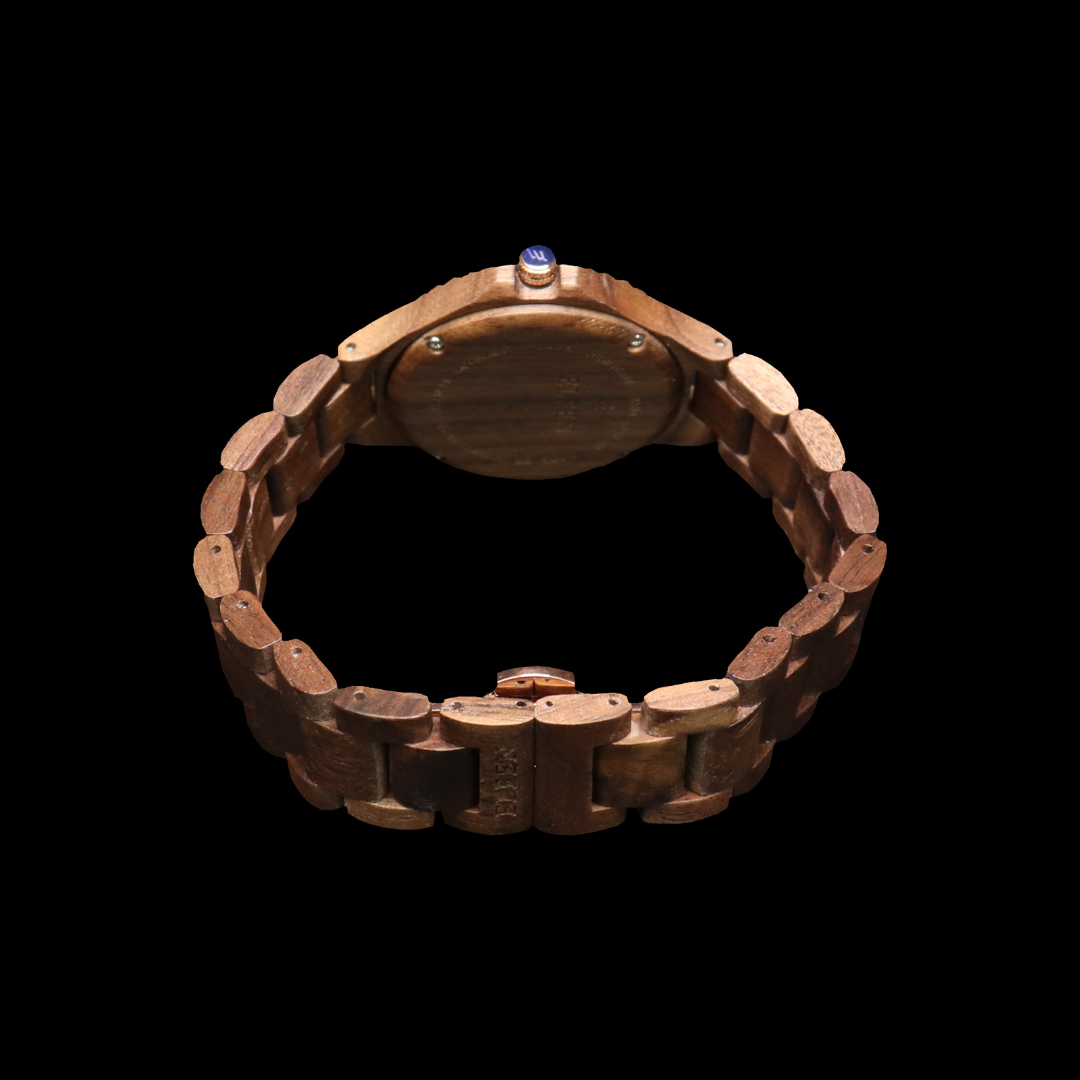 THIS MODEL: Celebrating the spirit of travel, we present to you our signature model "The Pride Elf", which is built by finely sharpening the edges of the 2 rare woods ( Ebony & Zebra Wood ), giving it a caramel texture and at the same time a dark wood charisma. The golden hands and golden band rings of this watch gives it a rich raisin color. Its a "SPECIAL EDITION" watch hence limited in supply.