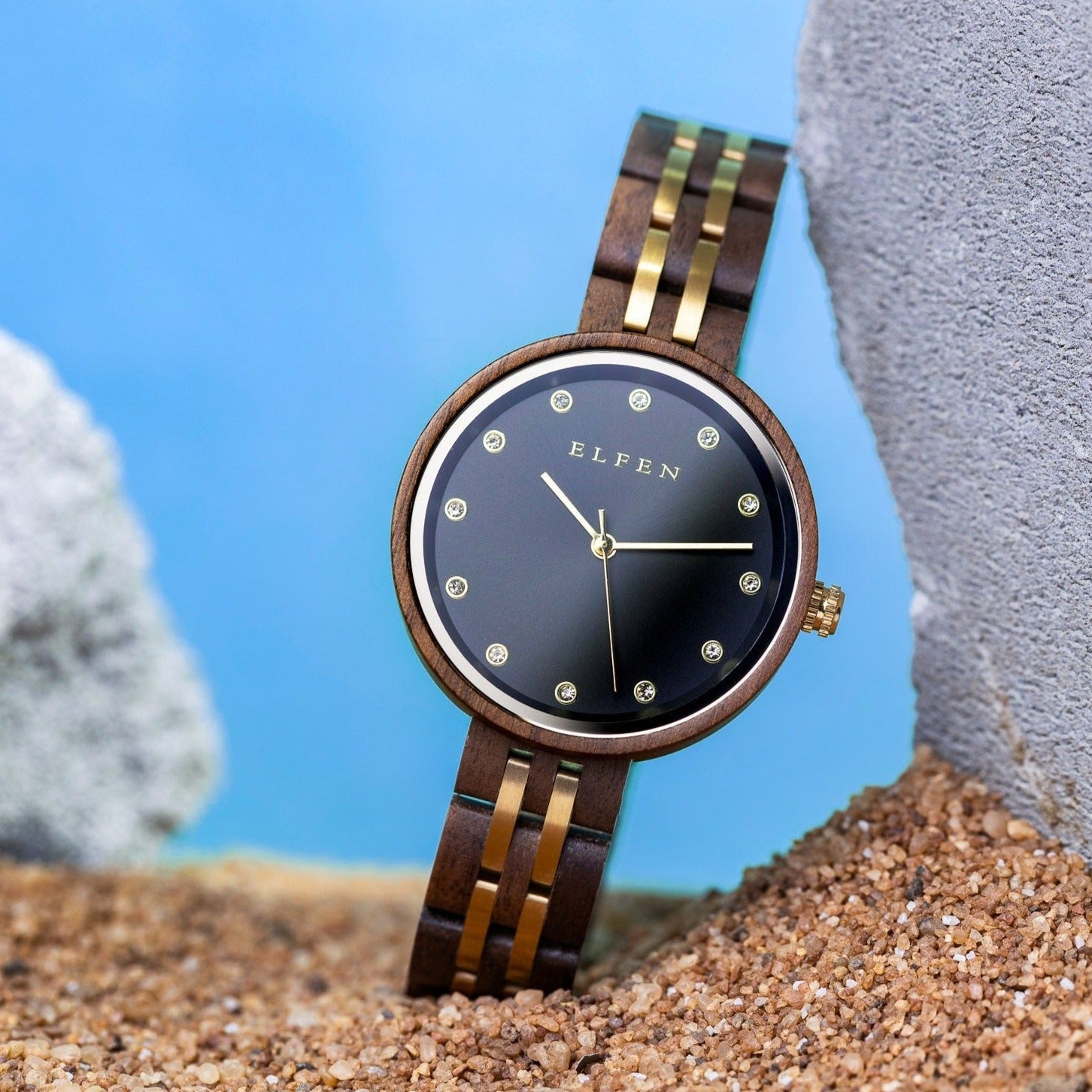 Unlike the popular opinion, wooden watches feel really light weight on your wrist. All of the watches from Elfen weigh less than 80 grams, and you can easily walk around without feeling anything on your wrist.