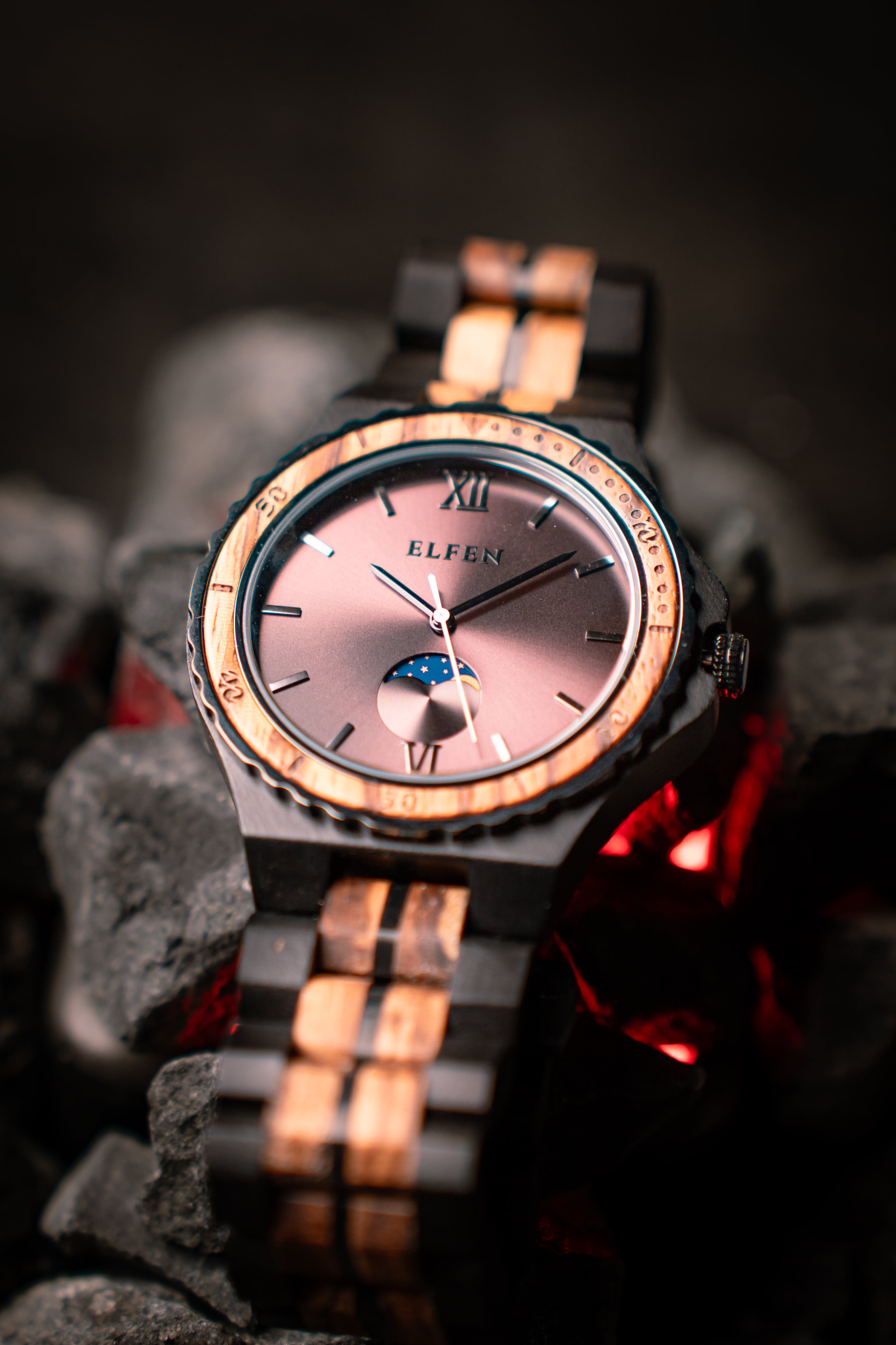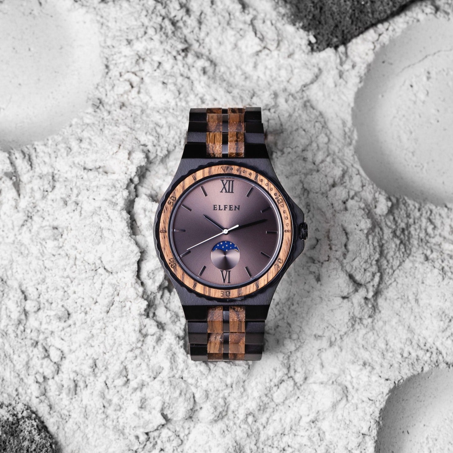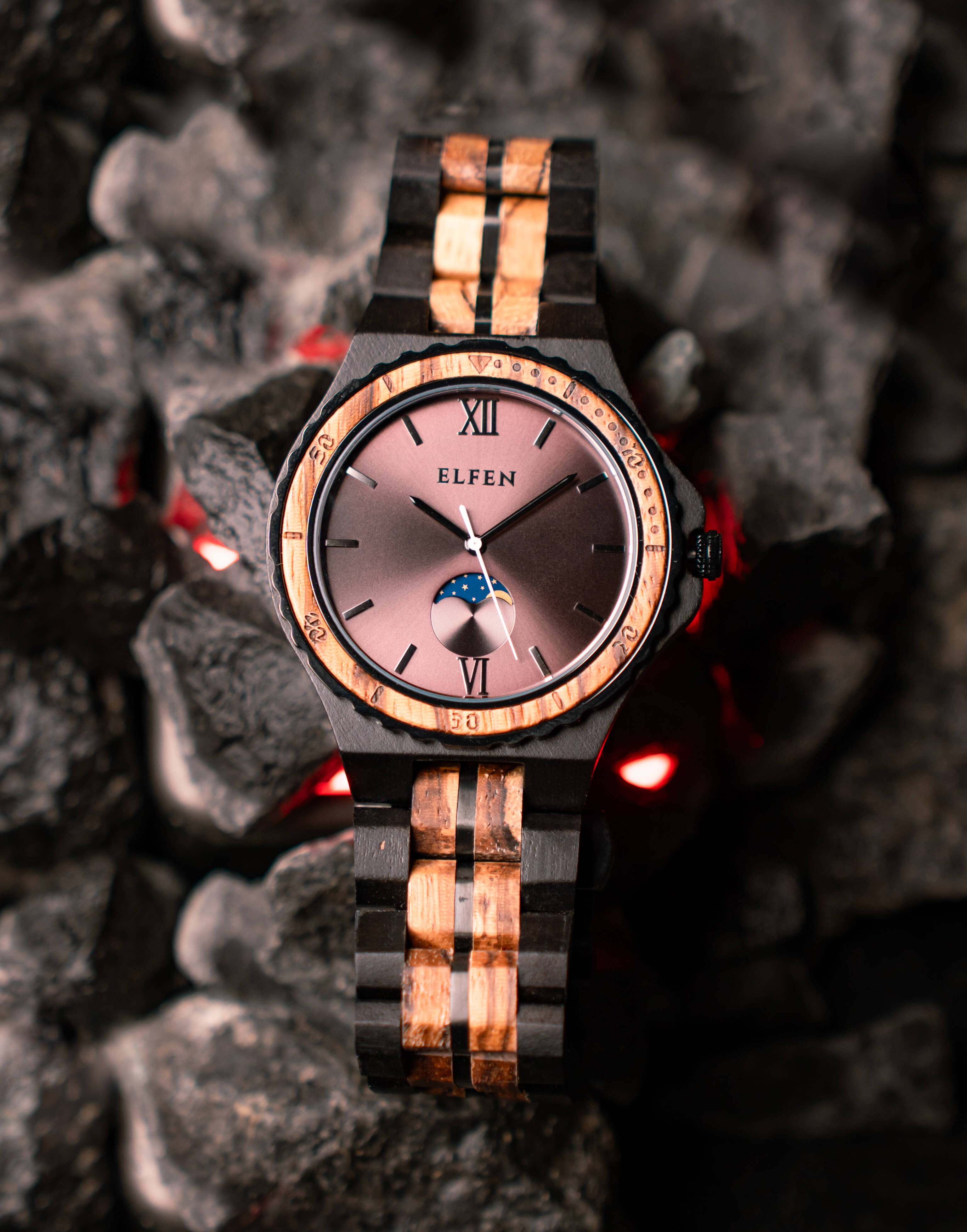 Unlike the popular opinion, wooden watches feel really light weight on your wrist. All of the watches from Elfen weigh less than 80 grams, and you can easily walk around without feeling anything on your wrist.