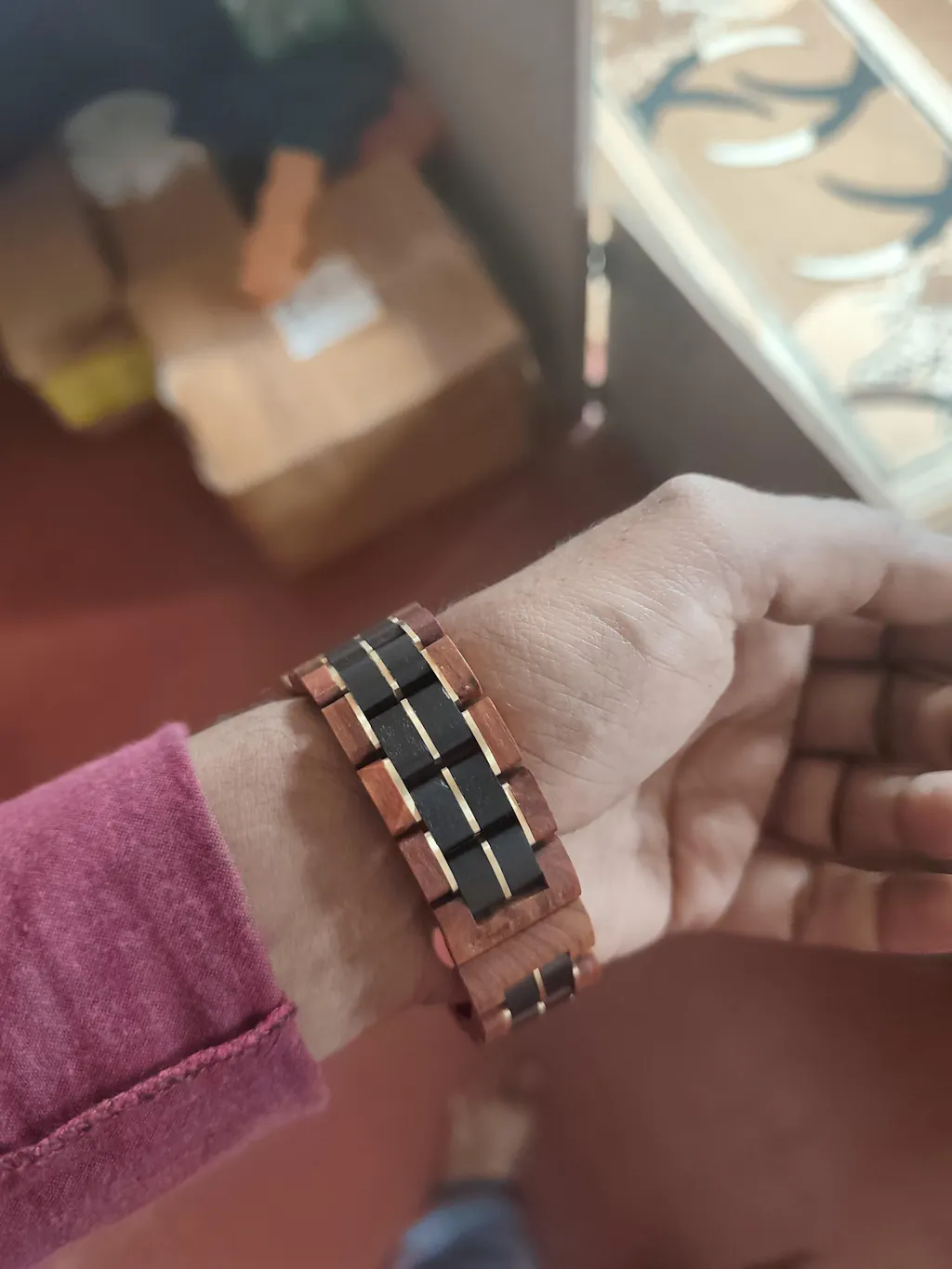The hue and color of the watch gets beter with time as it gets in regular touch with your body. The natural body fluids and sweat enhances the overall wood texture.