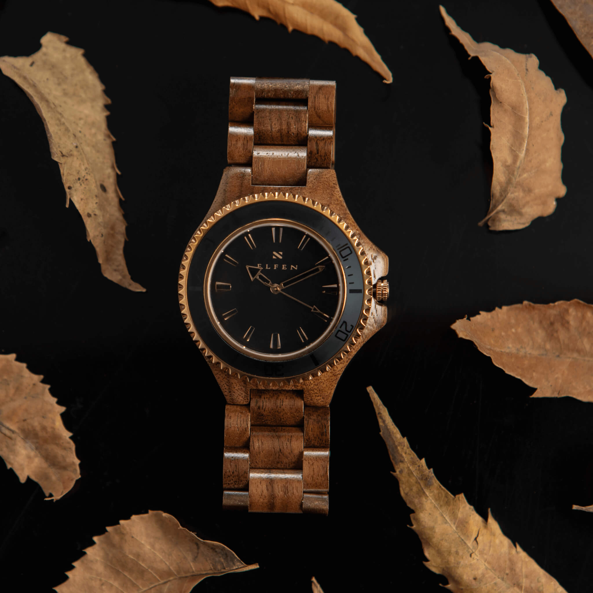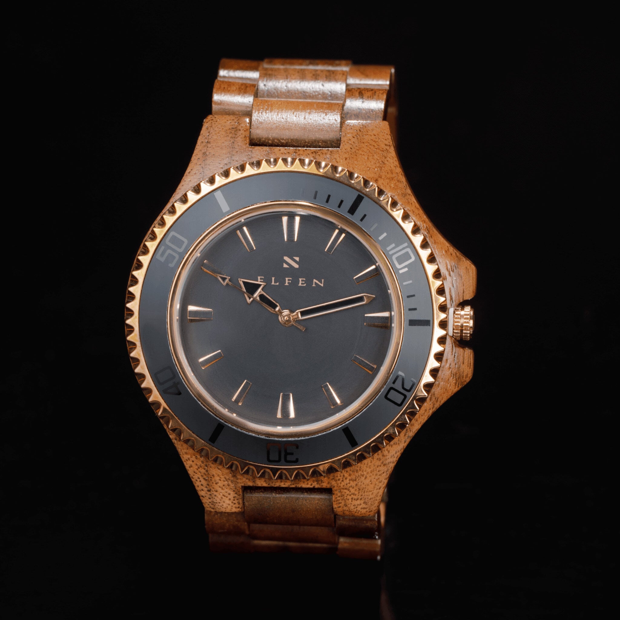 Unlike the popular opinion, wooden watches feel really light weight on your wrist. All of the watches from Elfen weigh less than 80 grams, and you can easily walk around without feeling anything on your wrist.
