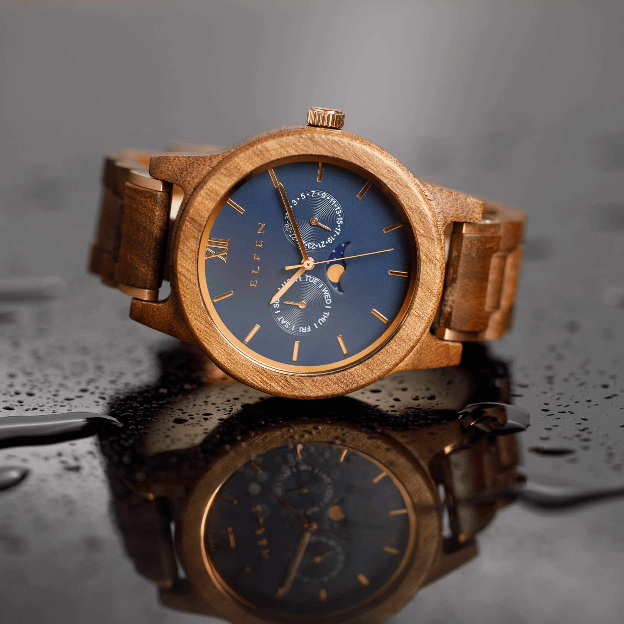 Unlike the popular opinion, wooden watches feel really light weight on your wrist. All of the watches from Elfen weigh less than 80 grams, and you can easily walk around without feeling anything on your wrist.